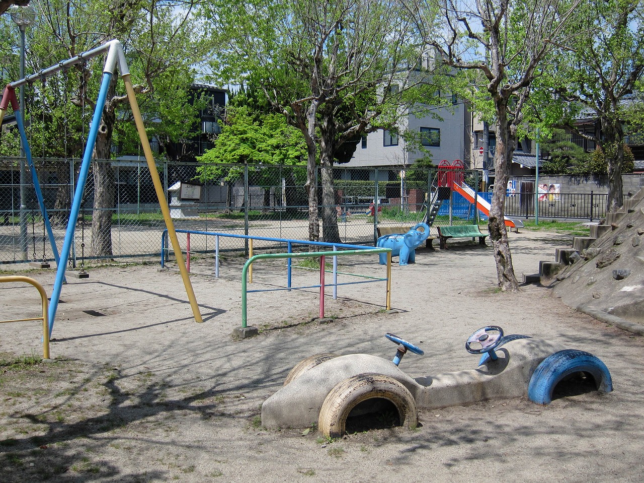 ![]() (2025年4月) レーシングカー型遊具 左にブランコ 北西方向 |