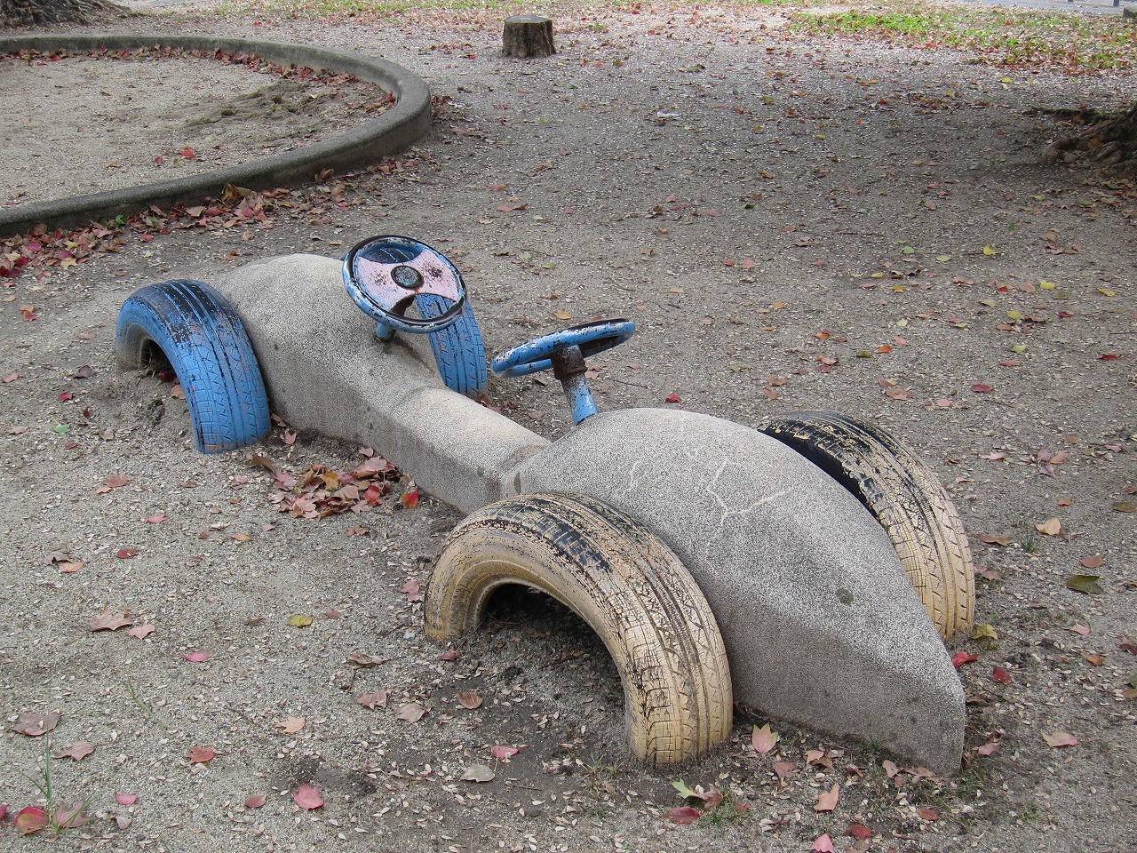 ![]() (2025年11月) レーシングカー型遊具 左奥は山型遊具隣接の砂場 |