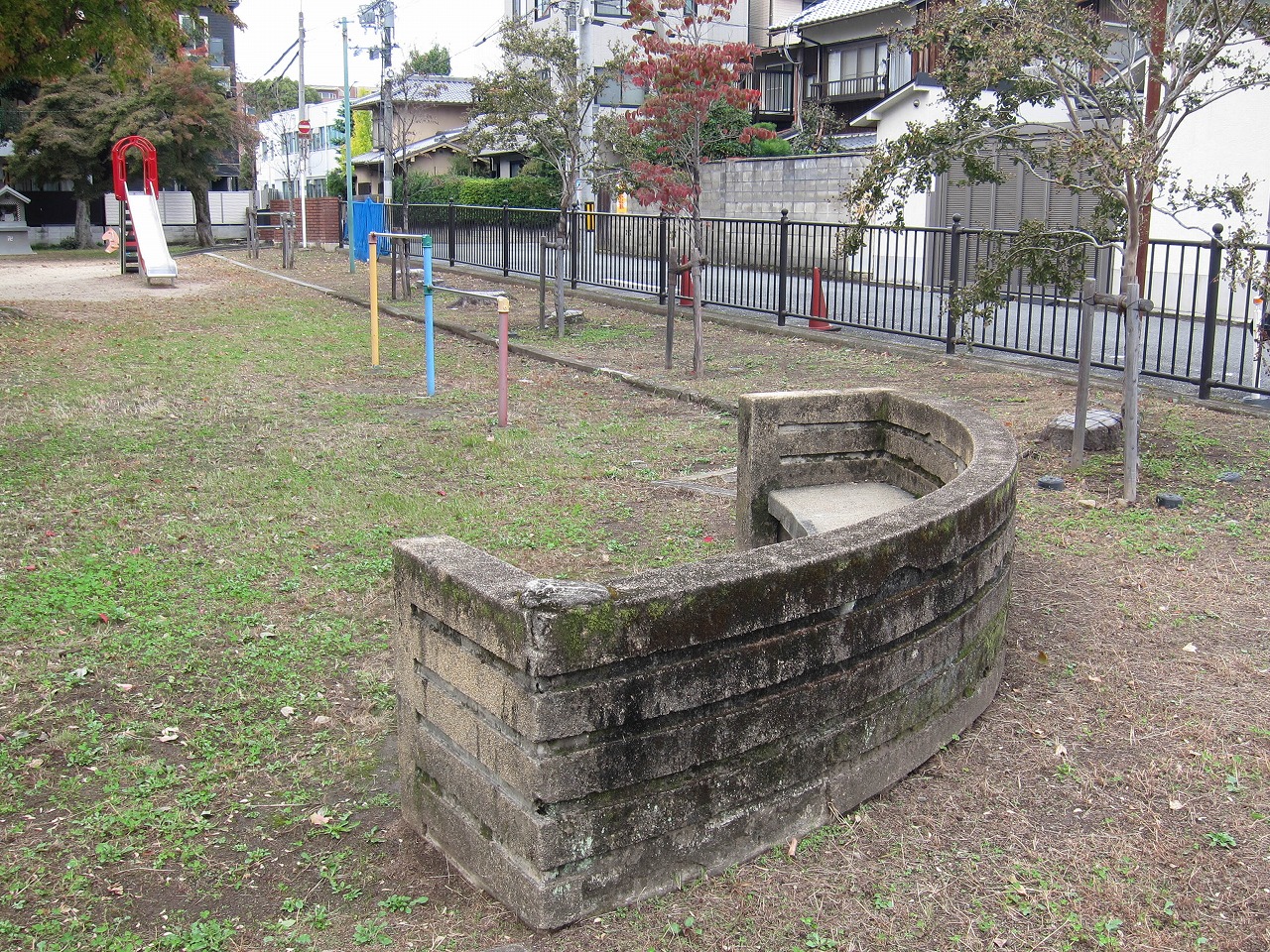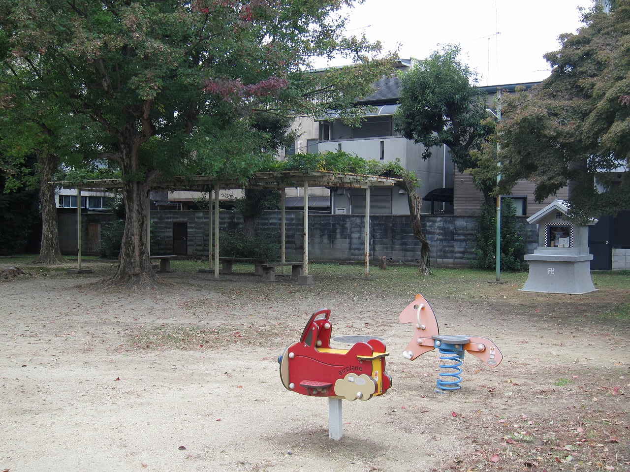 ![]() (2025年11月) スプリング遊具、ロッキング遊具 南西方向 左奥に藤棚、右奥に地蔵堂 |