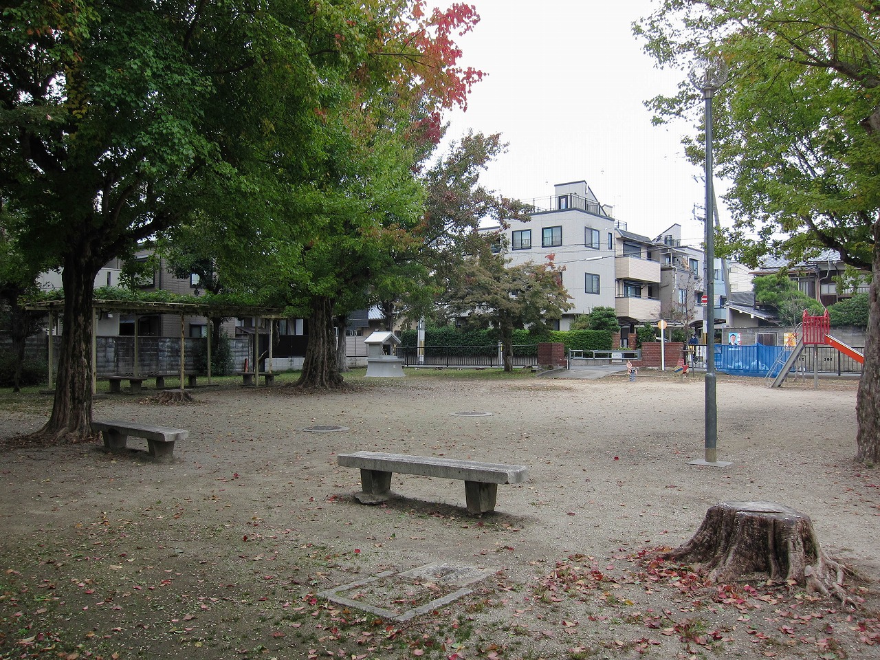 近くにある紫野柳公園と並んで、北区で最も古い公園です。紫明通と堀川通の交差点の北東に位置し、西半分のほとんどは広場で、東や北に遊具が集まっています。土木学会が選奨した「戦前竣工の京都市児童公園群」13公園のひとつでもあります。 動物の象形遊具(ゾウ)は古く、馬場公園にも同じゾウがいました。塗料の剥げた跡を見ると外側は青みが濃い水色、その内側は薄い水色、さらに内側は黒っぽい色(素材の色?)になっており、以前は薄い水色だったのでしょう。2009年頃までには既に濃い水色になっているようです。 (写真は2025年4月)レーシングカー型遊具も今は希少な存在です。なぜか上記のゾウと共にある例が他に3公園、馬場公園と、富小路殿公園と桜島公園にありました。富小路殿と桜島では既に撤去され、馬場も全面改修に入ったため、レーシングカーもゾウもこの紫野宮西公園以外の現存は京都市内では確認できていない状態です(ゾウは須磨浦公園など他県にはいるようです)。なおレーシングカーのハンドルは昔の富小路殿では回すことができましたが、近年の紫野宮西や馬場では回せない(わざと固定された?)ようになっています。 北東にあるひときわ古い構造物は、ベンチのようです。京都市緑のボランティアセンターの発行物によるとこれは掲揚台だと紹介されていましたが、ポールやそれを接続する金具はなく、後述のように2010年代前半頃までは別の場所に掲揚台があったので、こちらは掲揚台ではないかもしれません。紫野柳公園のラジオ塔周辺のような、大きな一連の構造物の一部を構成していた過去を想像したくなります。 (写真は2025年11月)北西にはかつてちびっこプール(1974年度開設)があり、その北側の道路の近くに古い掲揚台(下鴨森が前公園のものによく似ており、同様にポールを支えるための金具つき)がありましたが、いずれも2013~2016年の間に撤去されました。プールの跡地には2016年頃までにスプリング遊具とロッキング遊具が、2018~2020年の間にはすべり台が新設されました。地蔵堂はかつて公園南西にありましたが、2025年頃に今の位置で建て直されました。他に細かいところでは、山型遊具の土管部分は2009年頃には白色(ベージュ?)だったのが2013年頃までに紺色に変わっています。