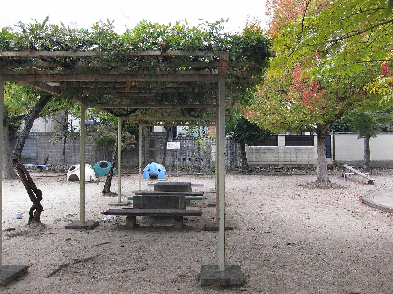 ![]() (2025年11月) 藤棚の奥に象形遊具 右奥はシーソー |