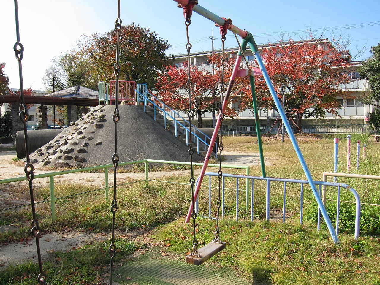 ![]() (2025年11月) ブランコ、山型遊具、右に3連の鉄棒 南西方向 |