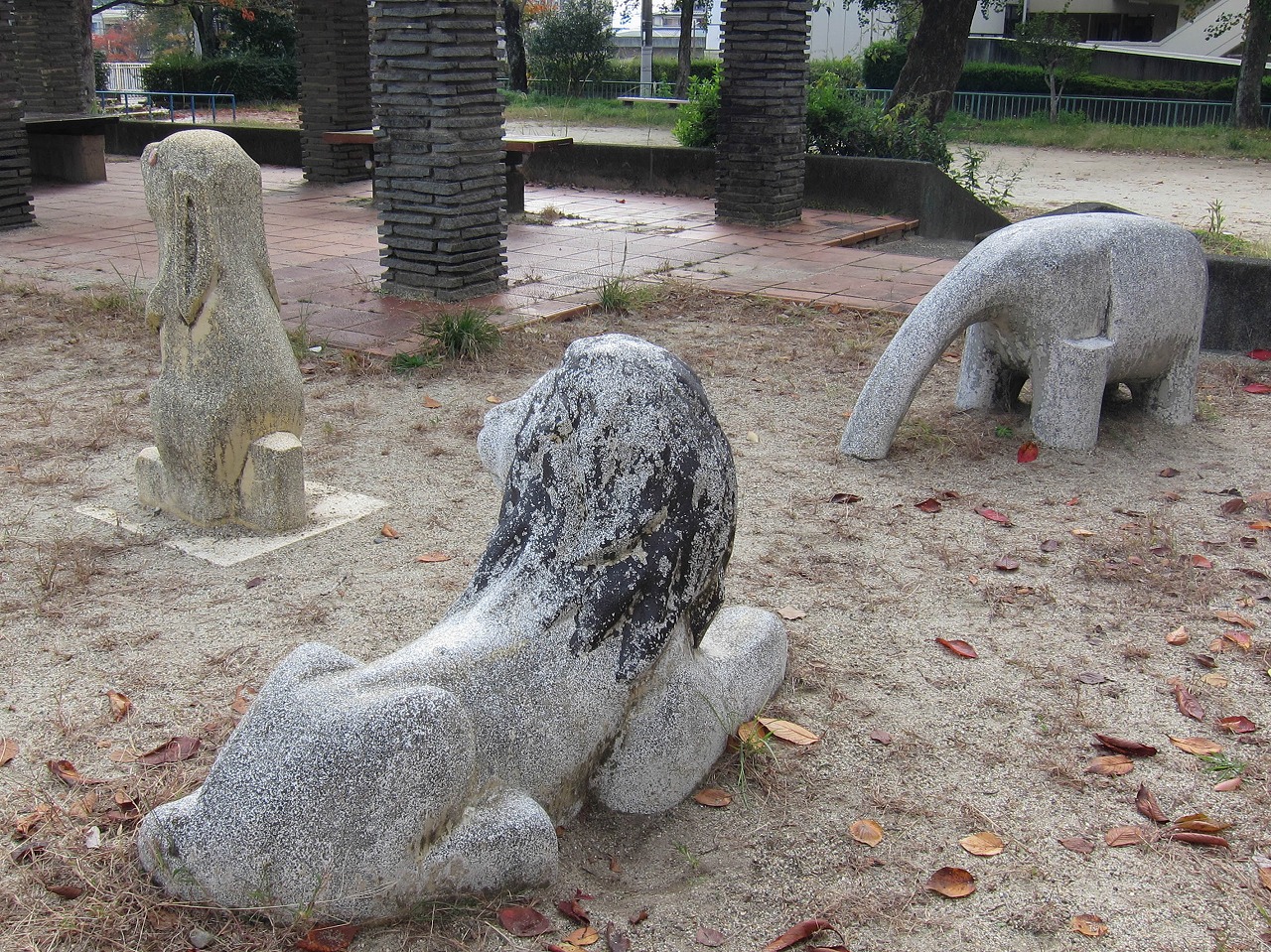 ![]() (2025年11月) 象形遊具(左からウサギ、ライオン、ゾウ) |