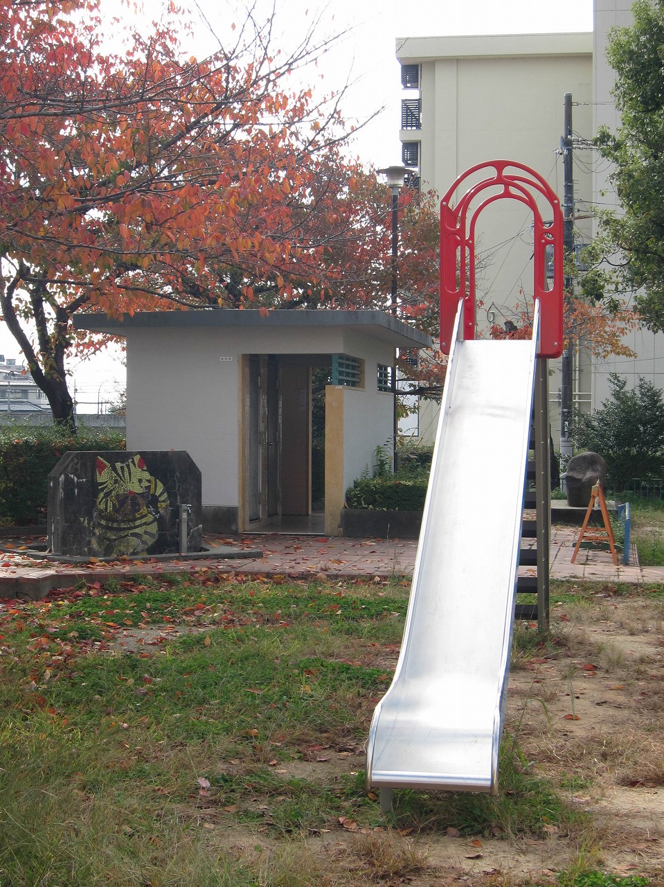 ![]() (2025年11月) すべり台 左に壁アート(トラの絵) 南の方向 |