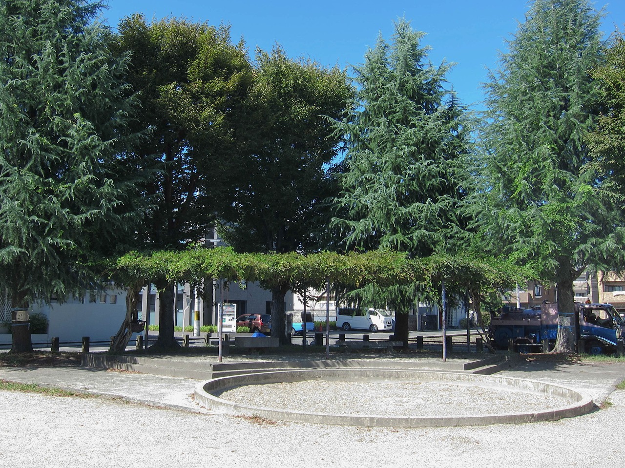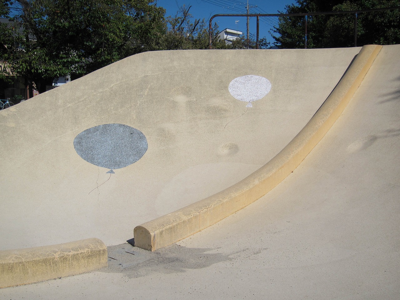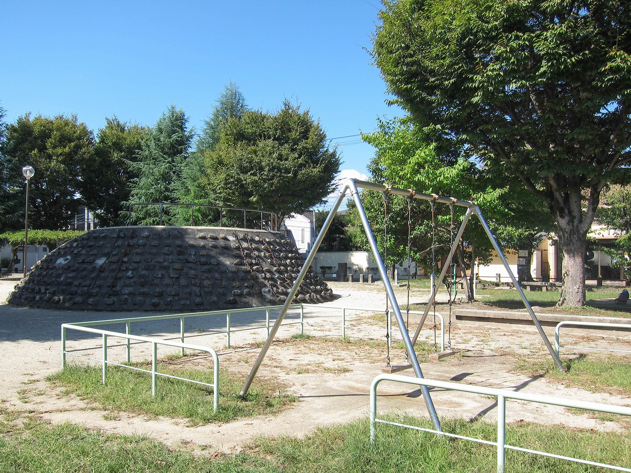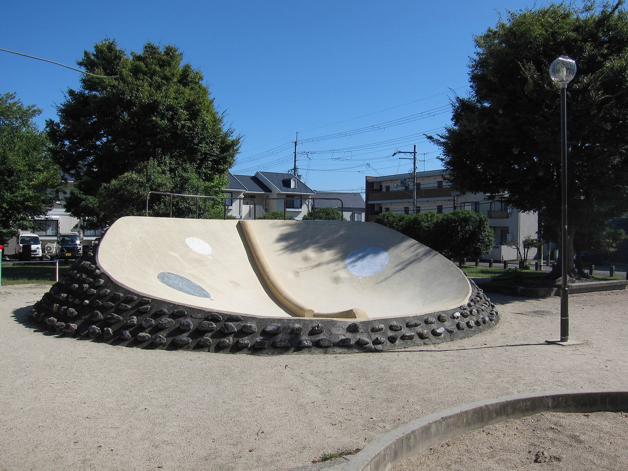 府立植物園の北東にある、1968年設置の公園です。 動物の象形遊具はかなり小さいもので、3つともおそらく形は同じで、3種類の動物にみえるように表面が塗装されています。小さい子がまたぐのに良いサイズなのか、3~6歳用との表記があります。 皿型遊具があり、ここの特徴としては、3つの風船の絵が描かれていること、中央が手すりのようなもので区切られていること、やや高めのところに凹凸がいくつかあること、が挙げられます。 ![]() ブランコは2013年頃までは北東の位置にありましたが、現在の位置に移転しました。その跡地に2013~2014年頃に象形遊具が置かれています。また南西の隅のほうに「枠だけの遊具」(中堂寺公園と同じもの)がありましたが、2009~2013年頃に撤去されています。