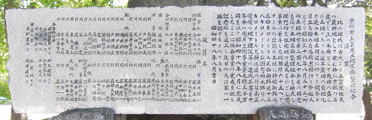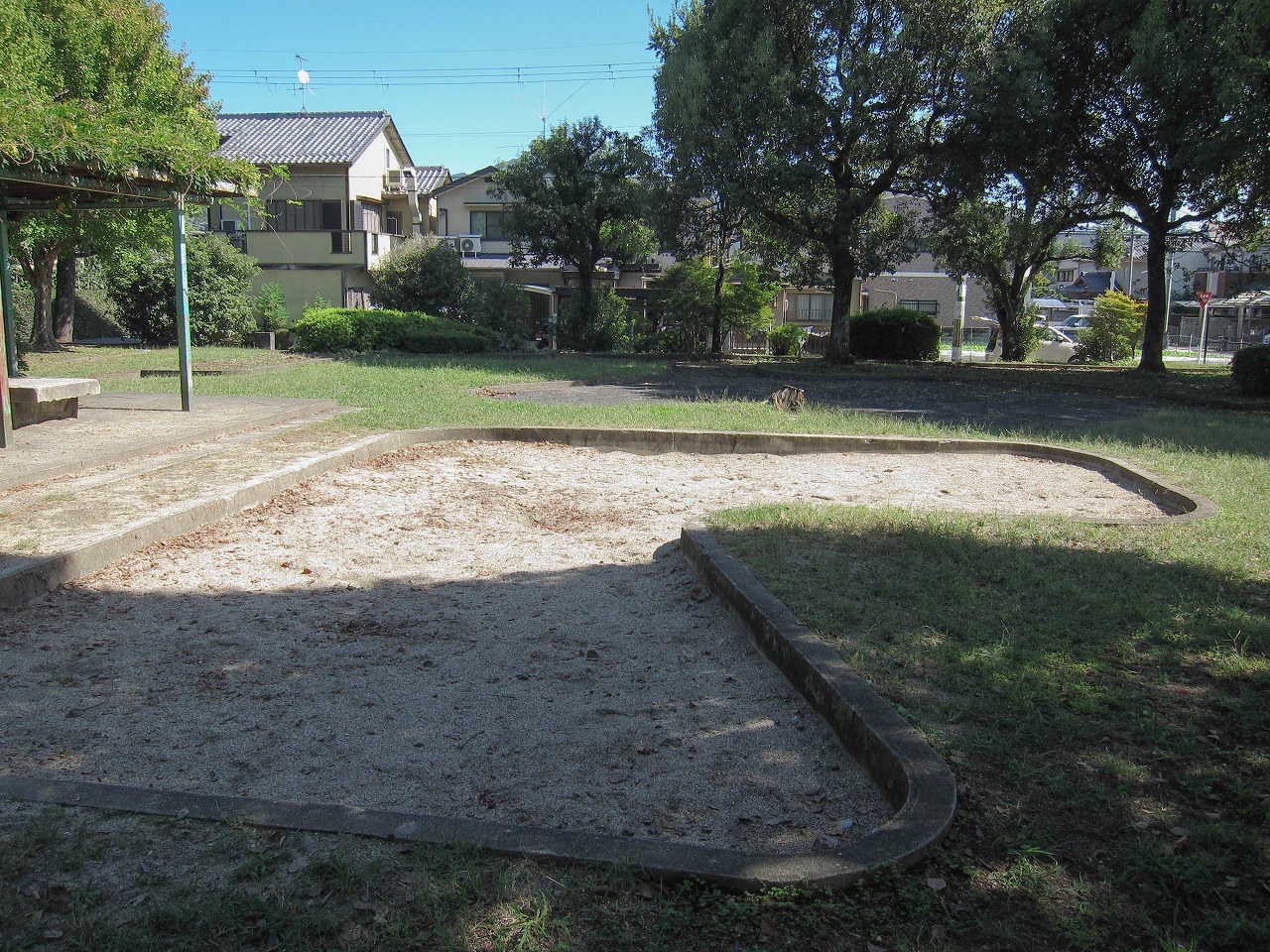 1971年設置、この近辺の中では最も広い公園です。やや複雑な形の砂場を除けば、遊具はシンプルなものばかりです。 北西に特に樹木が密集しており、北入口付近には「記念の森」との石碑があります。1972年付で、三条坊町公園の石碑とおそらく同じものです。 細長い石碑は「すぐき発祥之地」で、1973年のものです。裏側に上賀茂のすぐきの来歴について詳しく書かれています。 「完成記念」と書かれた大きな石碑も1973年のもので、これも裏側に詳しい説明があります。 ![]() 上賀茂の土地区画整理組合に関するもので、農耕地が宅地化する中で1963年に組合結成、道路や水道や「公園7ヶ所」などをつくって1973年に完成したとのことです。その7ヶ所がどの公園かは書いてありませんが、この近辺では73年までの10年間に、西松本(1968)、松田(1969)、烏帽子(1970)、岡本口(1970)、穂根束(1971)、糠田(1971)、菖蒲園(1972)の7公園が設置されているので、この7つでしょうか。地図で見ると、面白いことにこの穂根束公園を中心に他の6つの公園が周囲で六角形を構成しています。 (c)OpenStreetMap contributors 2025年10月現在の地図を加工北東のトイレの南にちびっこプール(1977年度開設)がありましたが、2019年頃までに撤去されました。すべり台はコンクリート製だったものが、2020~2022年頃に金属製に代わっています。2025年頃にはトイレが新しく建て替わりました。この周辺の6つの公園にはなぜかトイレが無いようなので、貴重な存在です。