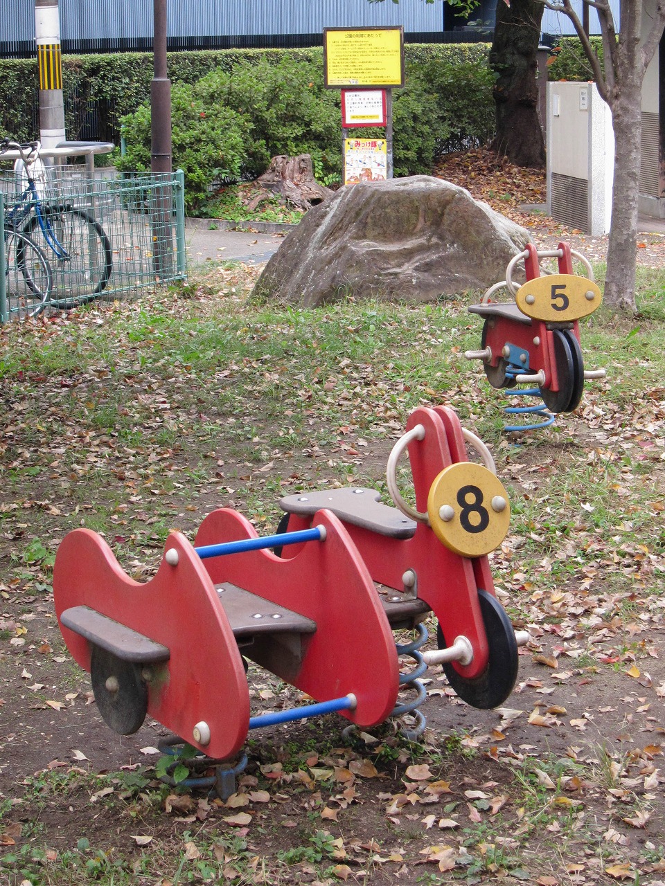 ![]() (2025年11月) スプリング遊具 (サイドカー付きオートバイ 奥はオートバイ) |