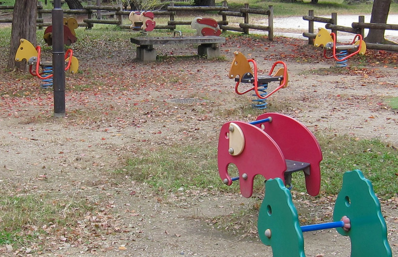 ![]() (2025年11月) スプリング遊具 (左からウマ(濃い黄)、ウマ(黄)、ゾウ、ドラゴン) |