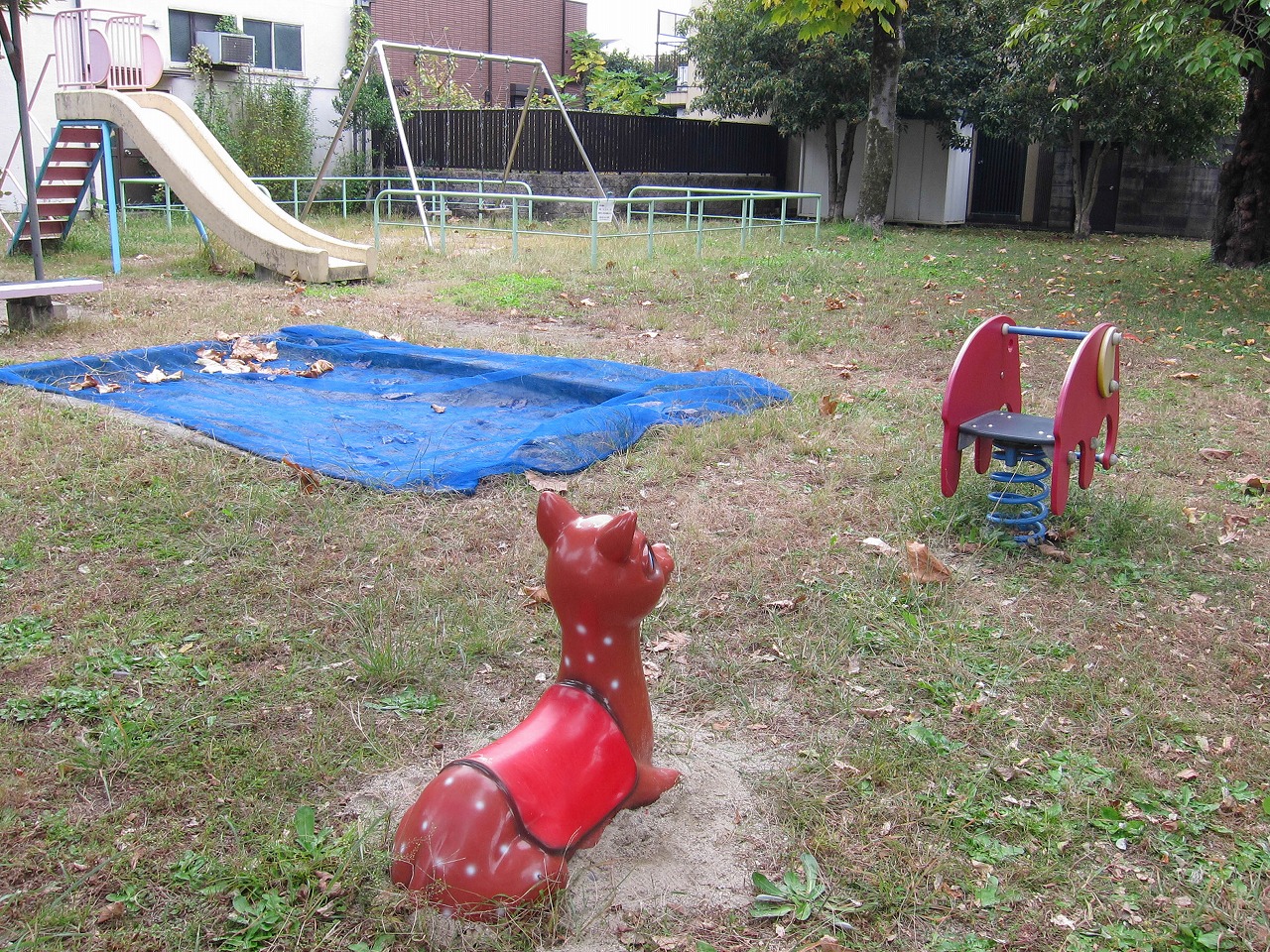 ![]() (2025年11月) 手前にシカ、右にゾウ 青い部分は砂場 奥にすべり台とブランコ 南東方向 |