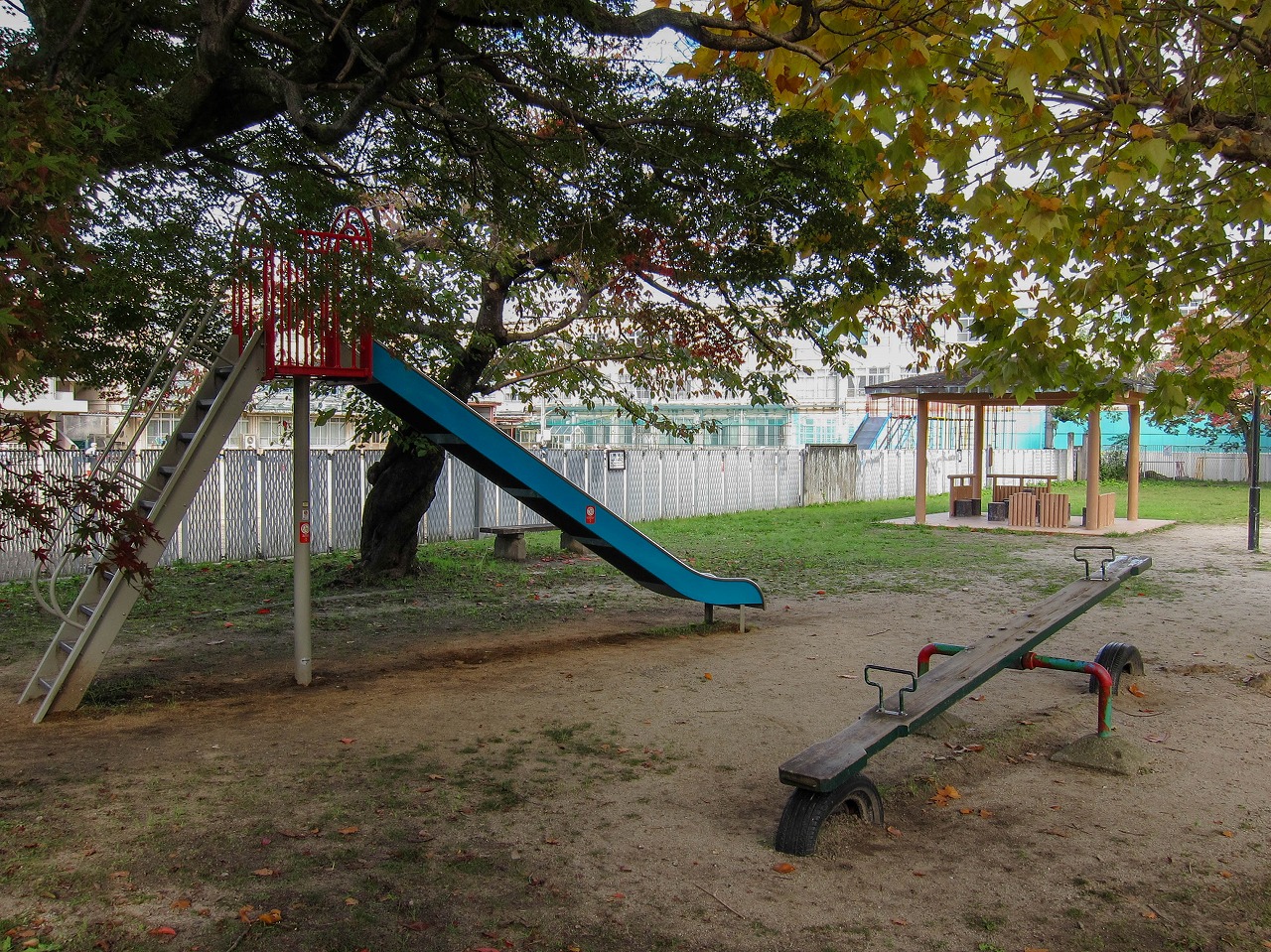 ![]() (2025年11月) すべり台、シーソー、奥に屋根付き休憩所 北西方向 |