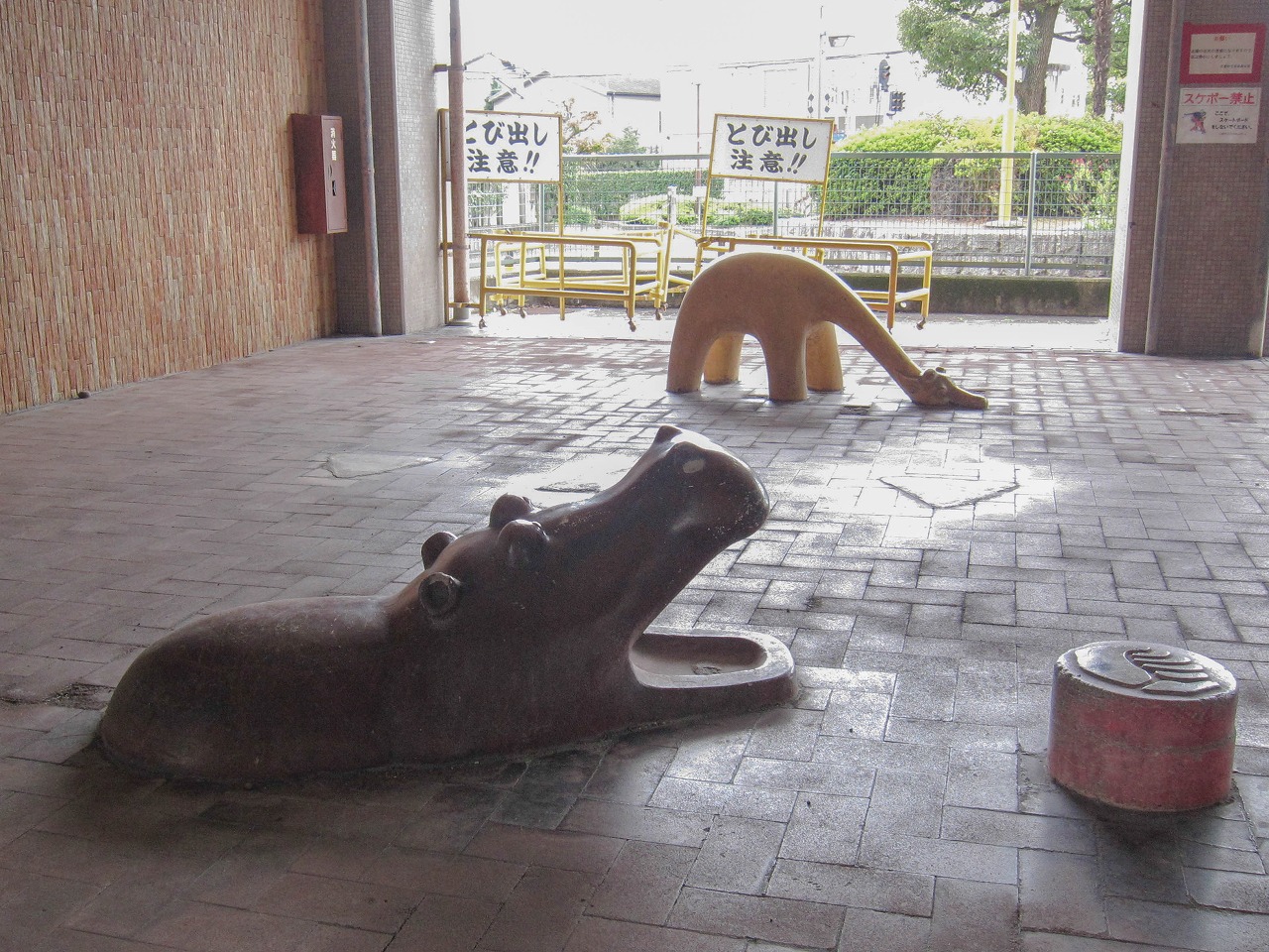 ![]() (2025年11月) カバ、キリン、手前はステップ遊具 南の方向 |
