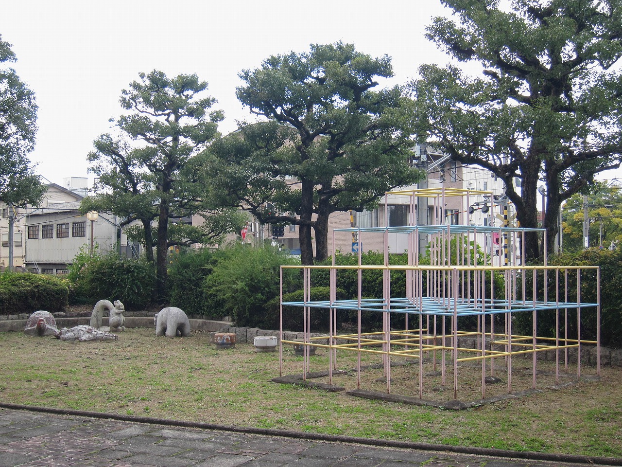![]() (2025年11月) 象形遊具、ステップ遊具、ジャングルジム 南西方向 |