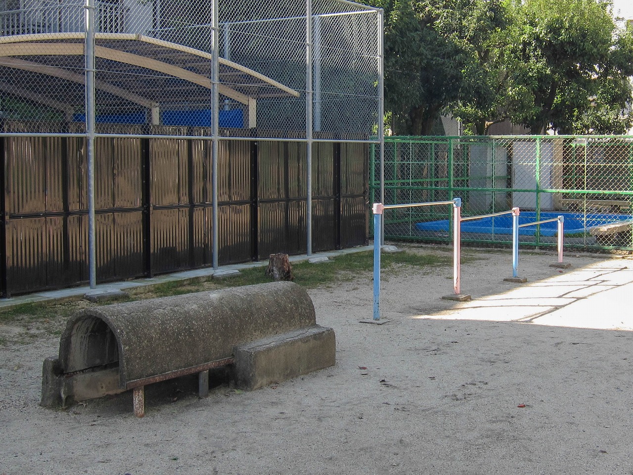 ![]() (2025年10月) トンネル遊具、鉄棒 奥にプール |